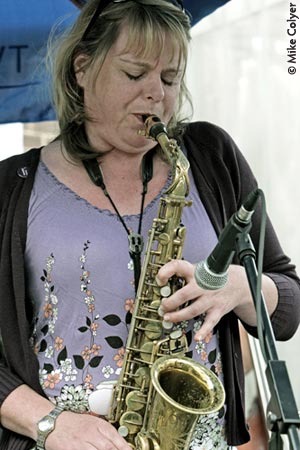 In her blues, "For Tom Harrell", Jensen's dry lyrical alto kept probing into the tune, but when she quoted from "A Love Supreme", this raised for me the music's incantatory spell several notches. Her mournful tones at times recalled those of altoist Marion Brown.