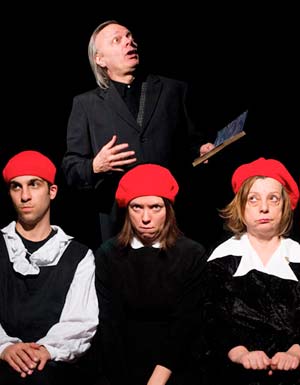 Through blocking, facial expressions, voices, and bodies, the dressed-in-black troupe deftly embodied the stories and psychological worlds of Mansfield's writing. The bracing sound effects (wind, creaking door, horse's whinny, a man's cry) were created by the actors when off stage.